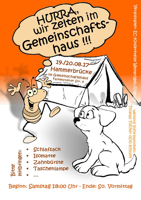 Da wir am Wochenende von Samstag bis Sonntag in Hammerbrücke übernachten, findet am 20.08.2017 ausnahmsweise kein Hoffnungsland statt.